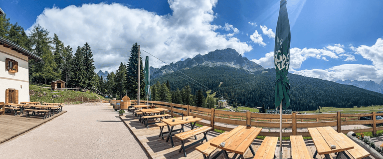 vi invita a rilassarvi e a godere di una vista mozzafiato sulle iconiche Tre Cime di Lavaredo, sul maestoso Monte Cristallo e sui suggestivi Cadini di Misurina.